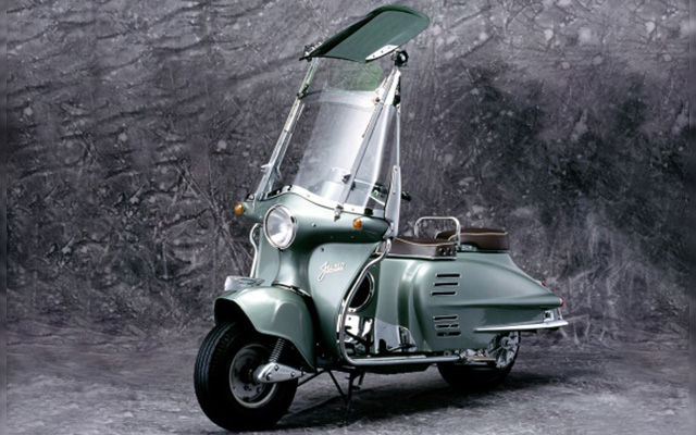 The Juno K-type was the most advanced scooter at the time, taking advantage of its many innovations: it had the world’s first self-starter for a motorcycle, and a large, all-weather windscreen which was further equipped with turn-signals, another first.