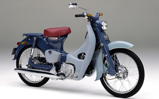 The Honda Super Cub C100 was equipped with an innovative and high-performance 50cc 4-stroke engine, creative and unique designs including the low-floor backbone, a centrifugal clutch system and a large plastic leg shield. The basic design and concept of the first generation remained virtually unchanged and passed on to current models.