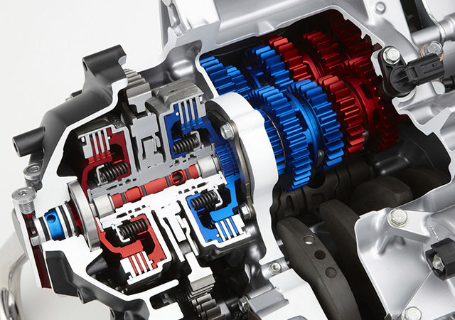As the name suggests, Dual Clutch Transmission features two clutches: one for off-the-line acceleration and 1st, 3rd and 5th gears, and one for 2nd, 4th and 6th gears. The use of this technology in a motorcycle is a world’s first.