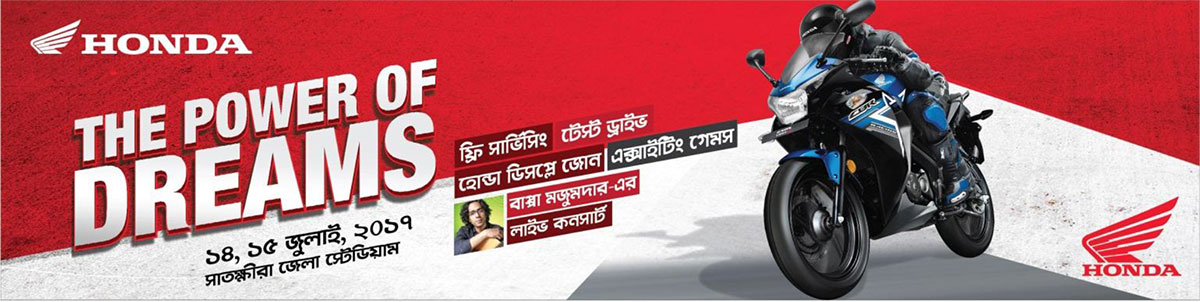 Bangladesh Honda Private Limited (BHL) is going to arrange a grand event named “The Power of Dreams” in Satkhira. This event will be hend in 14th and 15th July 2017 in Satkhira Zilla stadium. It will be a two days event where Honda will showcasing Honda’s glorious history, display products, arrange test drive activity, exiciting game show, product service and a concert by renowned singer Bappa Majumder.