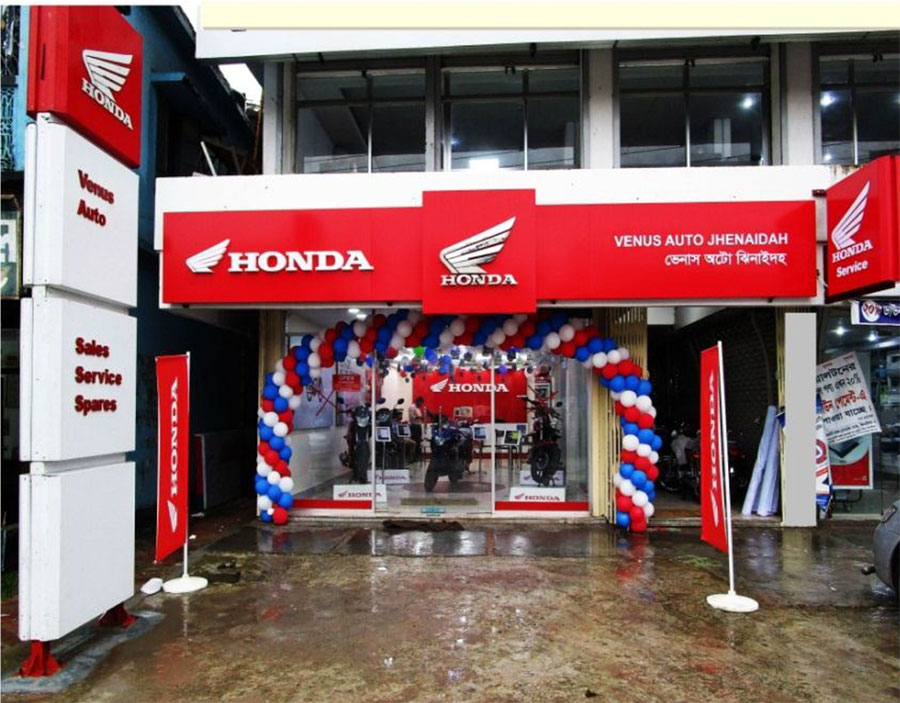 Bangladesh Honda Pvt. Ltd opened a 45th showroom in Agnibina Sharak at Jhenaida on July 27, 2017 under the dealership of Venus Auto. The showroom is new and will help the people of Jhenaida to get Honda all model bikes, service and spare parts from this showroom.