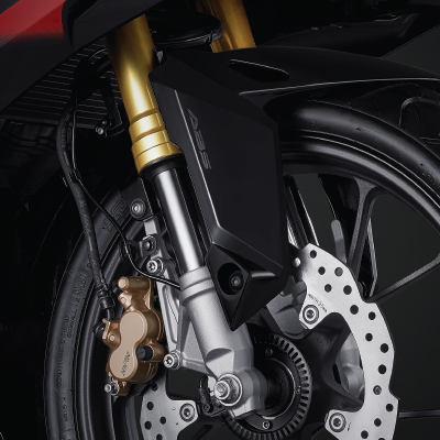 Inverted front suspension absorb more shock from the road and give rider a full riding confidence of ups & down road condition
