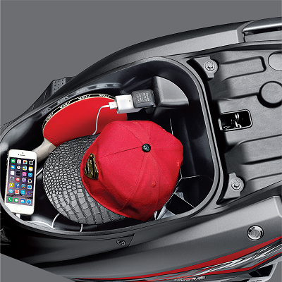 Carry your cool accessories with 18L under seat storage and get optional mobile charging facility