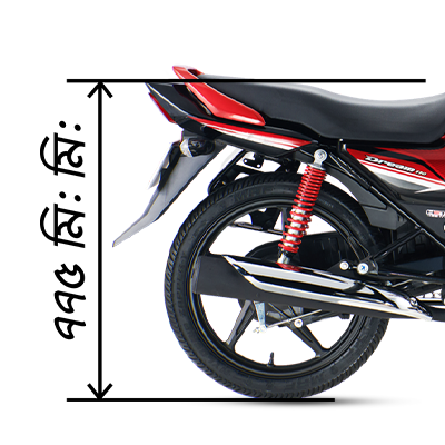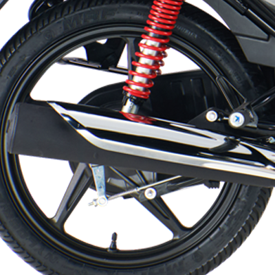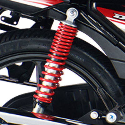 5 step Adjustable Twin Spring loaded rear suspension with improved piston rod gives comfort to both the rider & the pillion even on tiring journey and prevent ride fatigue, even in bad road condition.