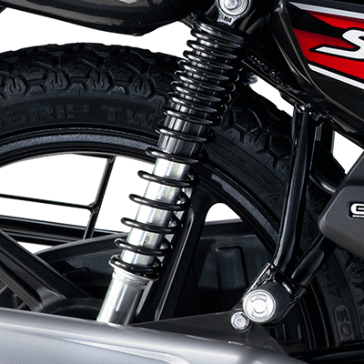 Specially developed suspension unit with increased stroke to manage any kind of road condition with ease. It is able to absorb the vibrations in rough terrains which gives extra stability to the rider and pillion.